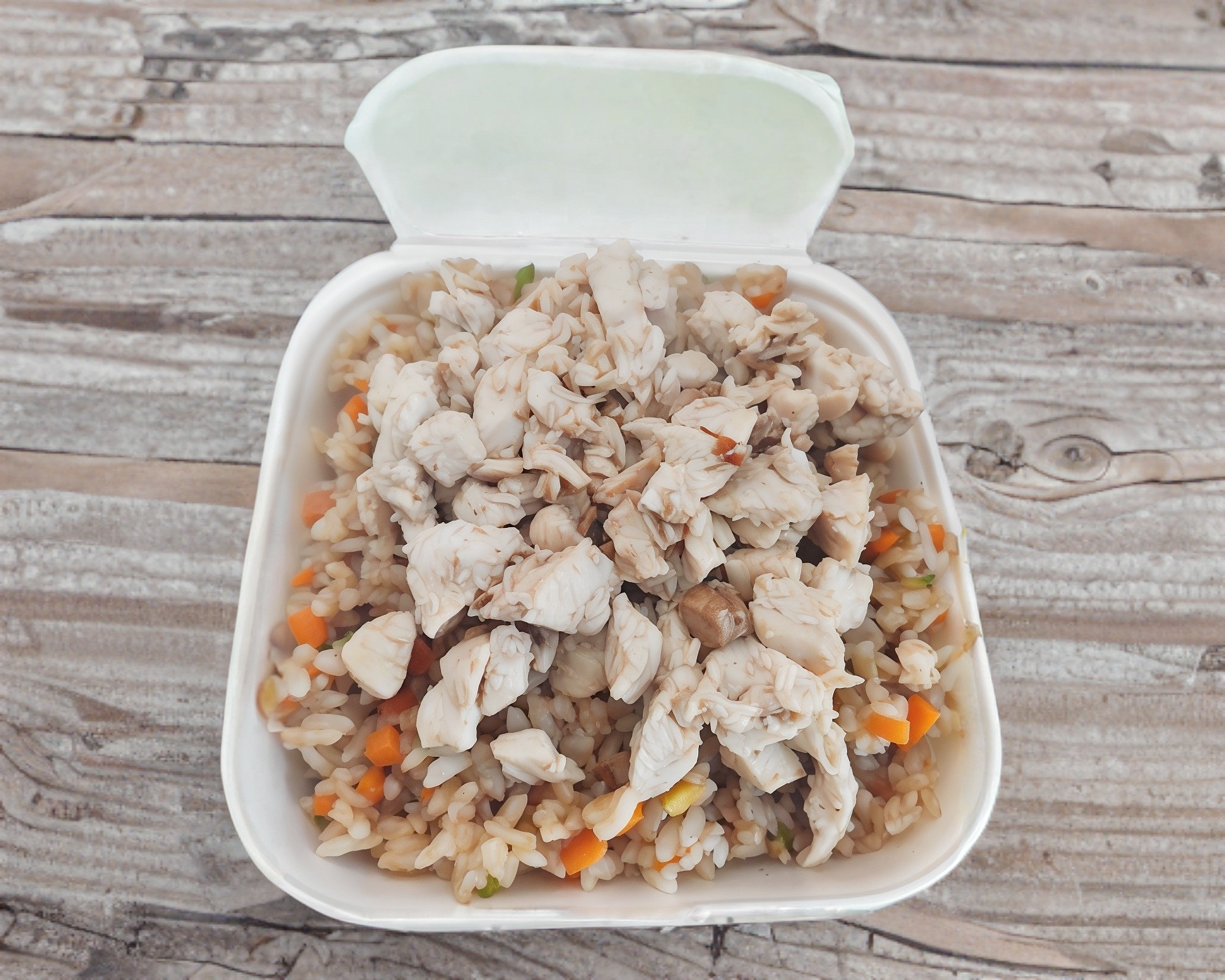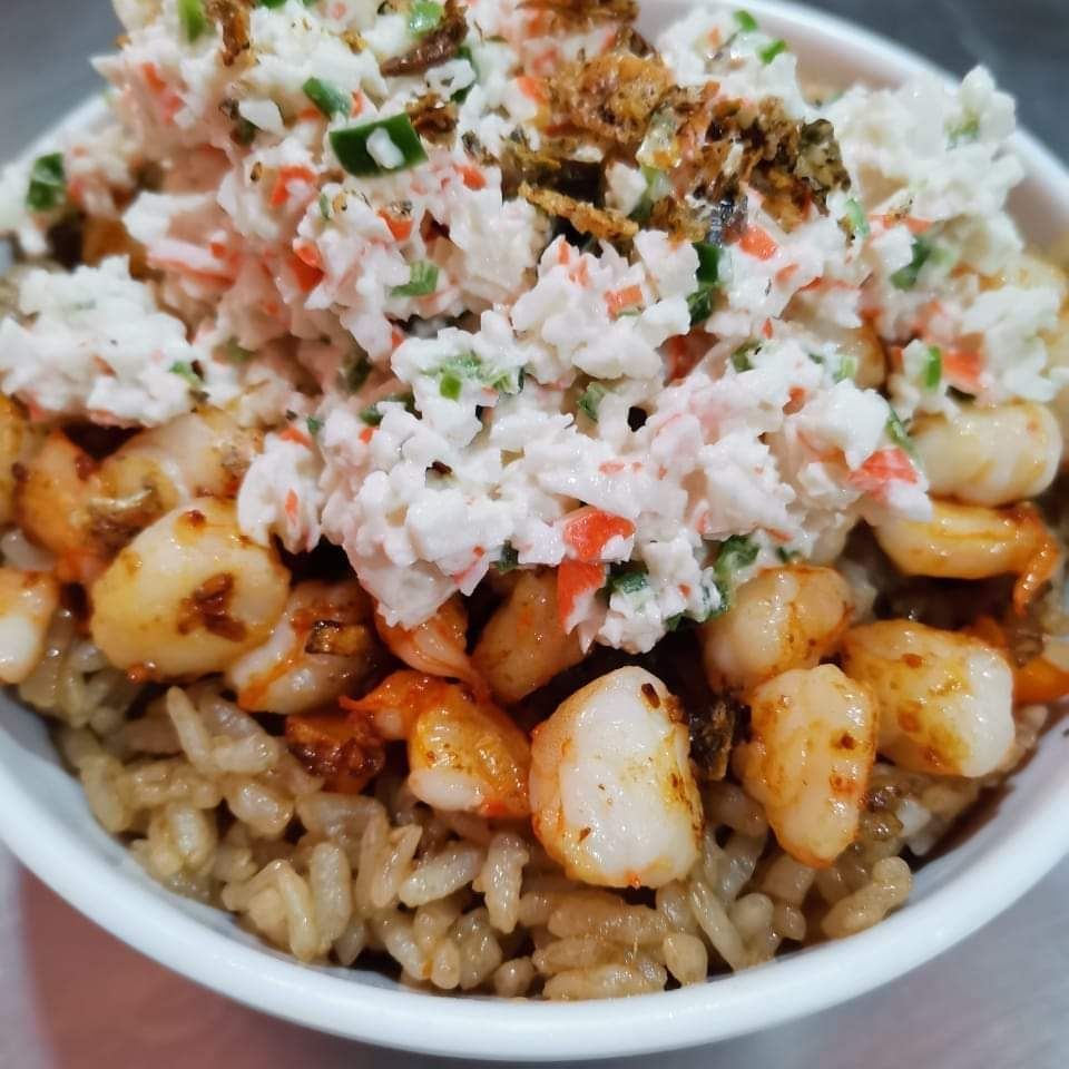 Pollo frito bañado en salsa agridulce estilo coreana acompañado de arroz gohan.