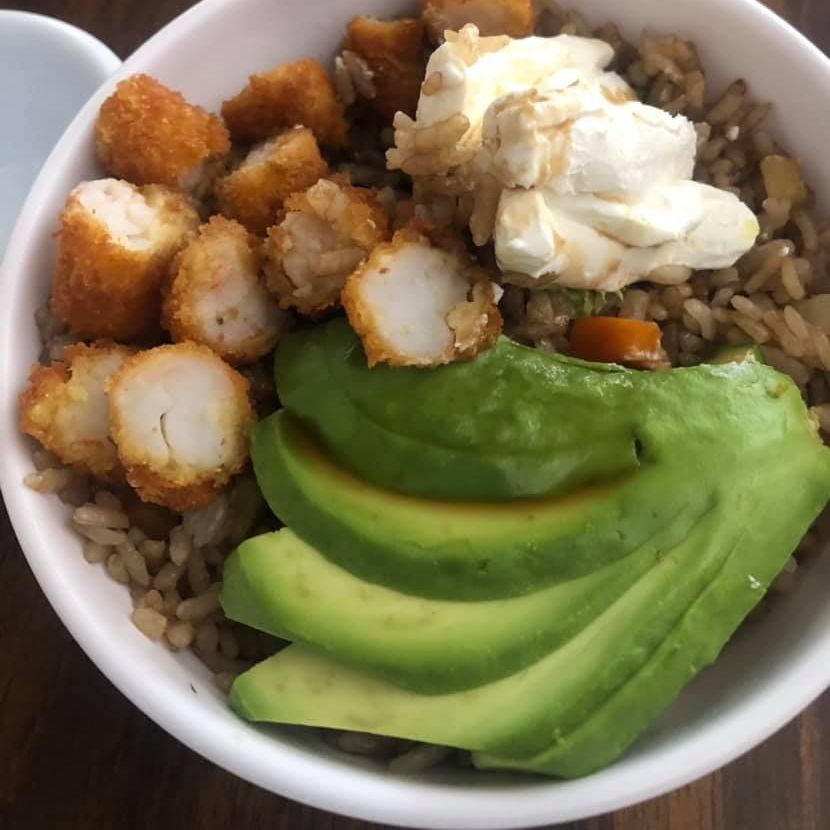 Por dentro: queso crema y aguacate. Por fuera: pollo empanizado.