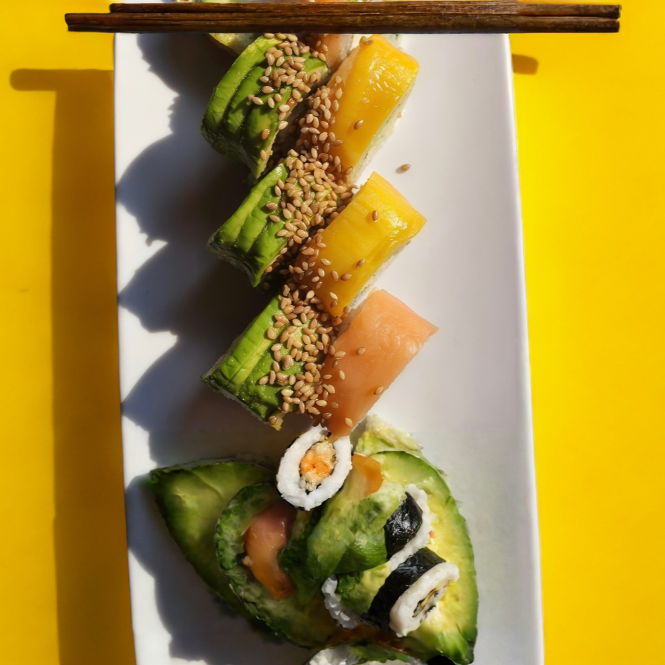XF: kiwi y salsa de anguila. XD: filadelfia, aguacate, mango y camarón empanizado.
