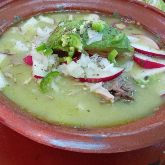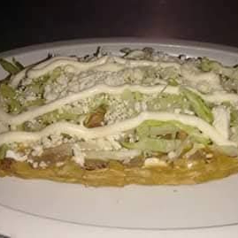 Carne de pollo, chicharrón, aguacate, tostadas, cebolla