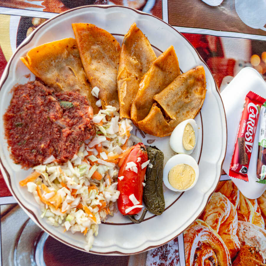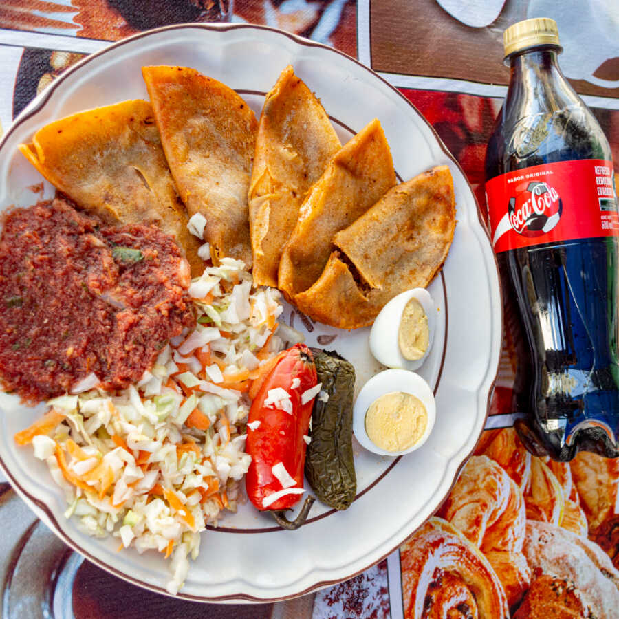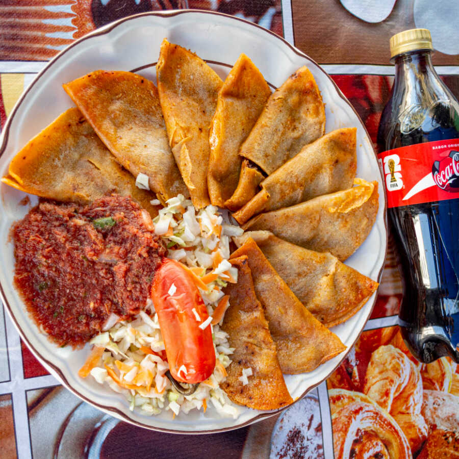 5 Tacos de canasta acompañados de salsa
