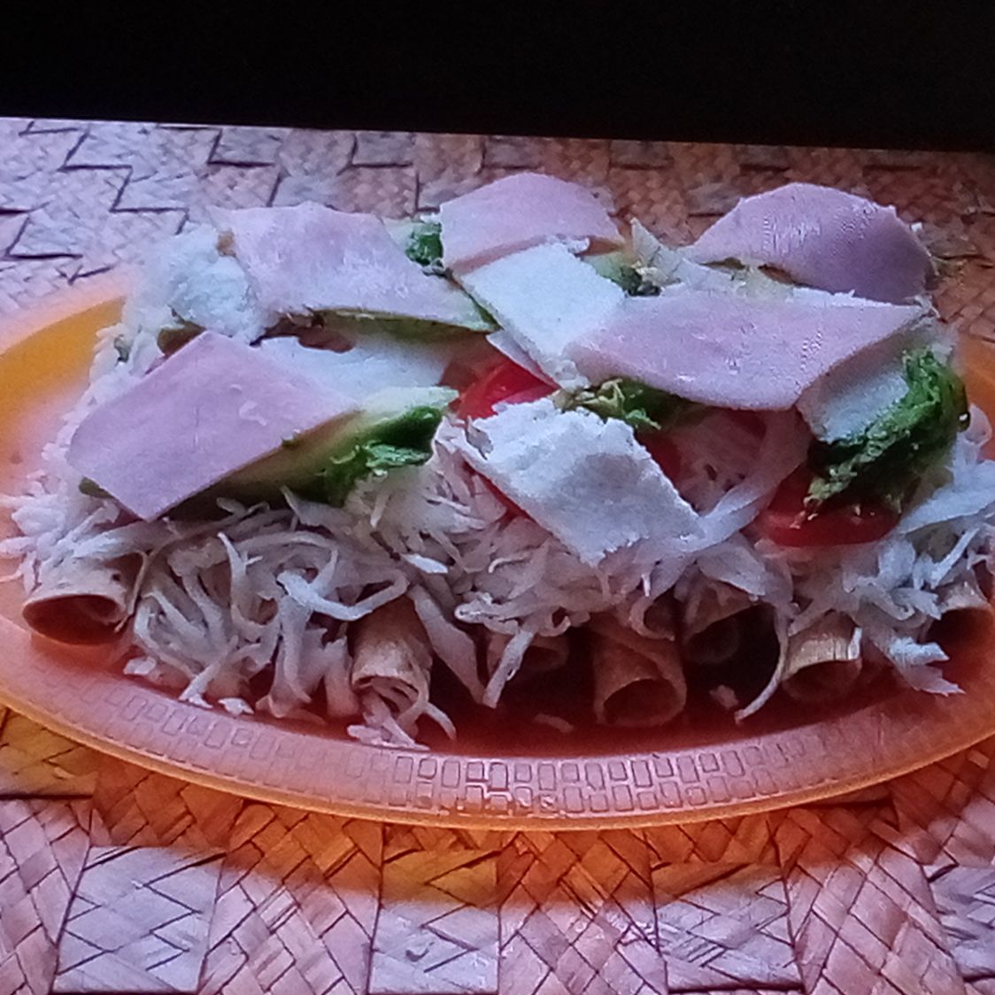 ORDEN DE 5 TACOS DORADOS, MAYONESA,COL, JITOMATE, CEBOLLA, AGUACATE,QUESO BLANCO,JAMON,SALSA ROJA DE ÁRBOL