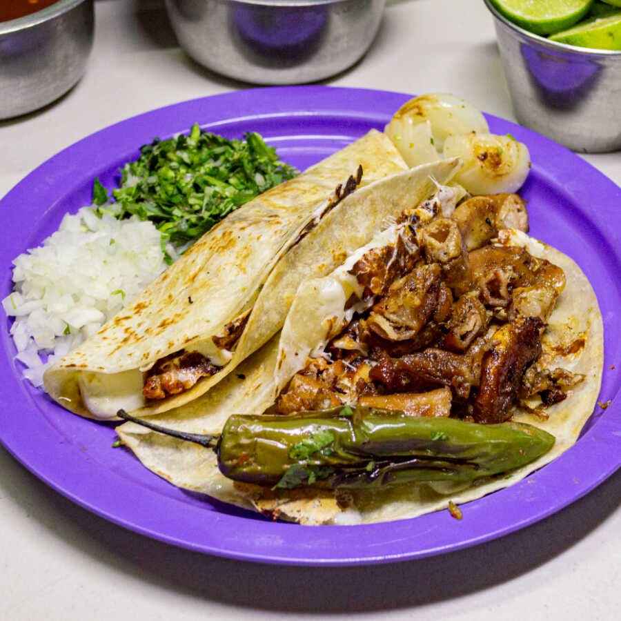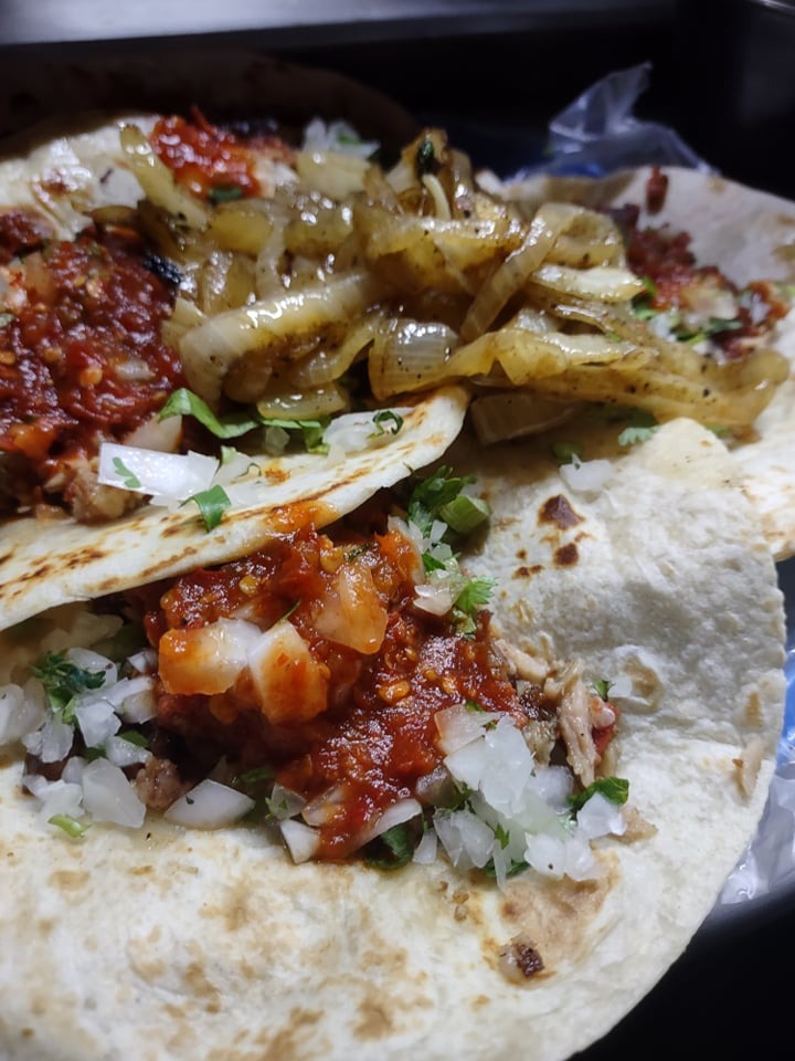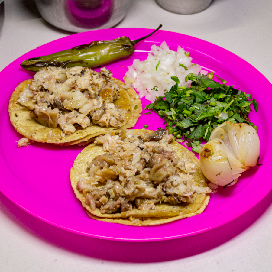Plato personal: 1 taco chico INGREDIENTE: Cebolla,cilantro, salsa, res