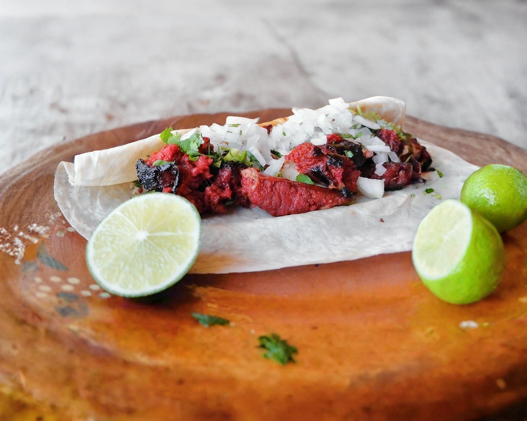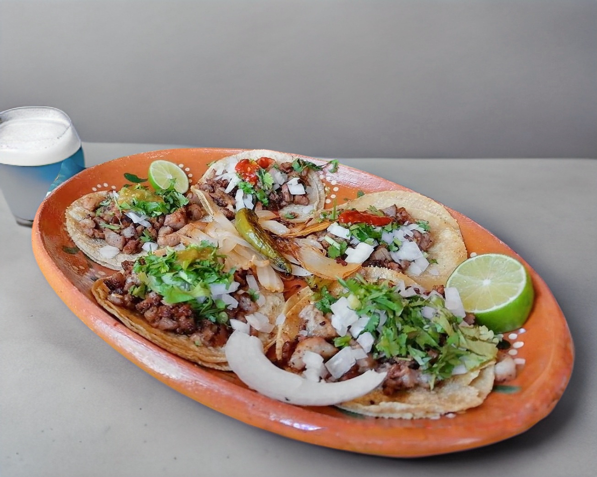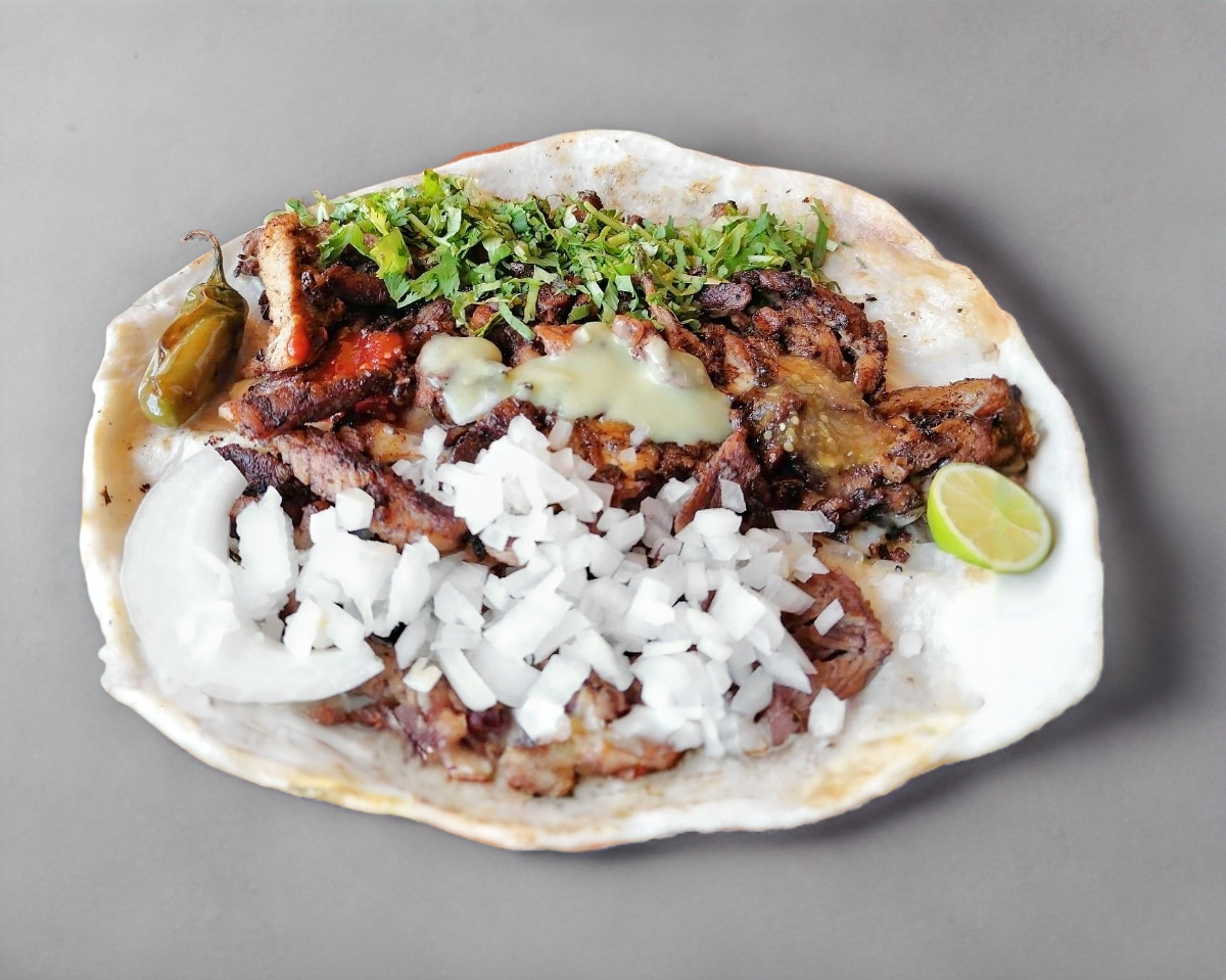 ARRACHERA, CEBOLLITAS ASADAS, SALSA VERDE,ROJA o' GUACA-MOLE, CEBOLLA, CILANTRO Y LIMONES.