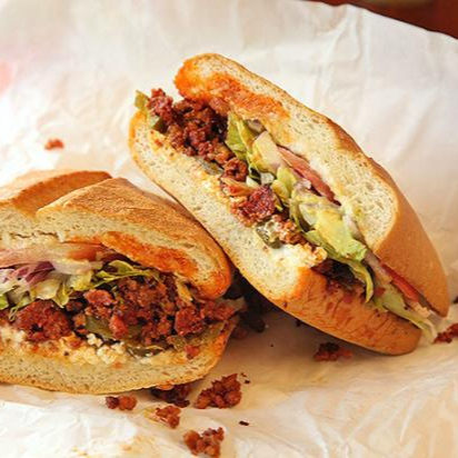 Torta combinada de bistec y chorizo con queso asadero, preparado con mayonesa, lechuga, aguacate y jitomate.