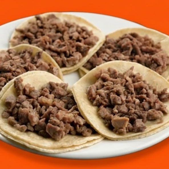 Orden con 4 tacos de bistec y Pastor,con una deliciosa papa en mantequilla