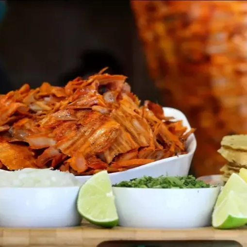 Paquete de 1 Kilogramo de nuestro deliciosa carne de pastor, Incluye Tortillas, Verdura, Cebollitas, Limones, Salsas y Piña