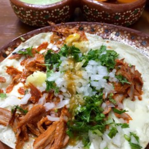 Un platillo único, preparado con chile morrón, carne de pastor, piña y queso (Incluye tortillas de maíz))