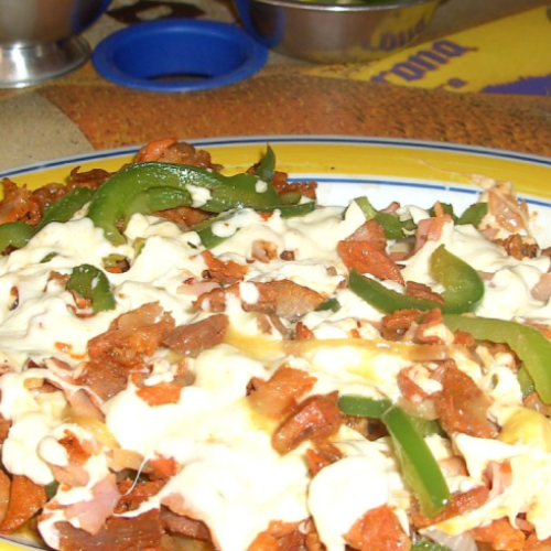 Morron , cebolla , pastor , chorizo y queso