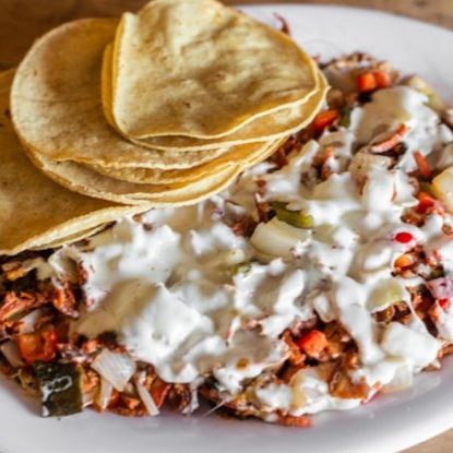 Carrne de pastor, pilla queso , chile morron, cebolla, queso al gusto