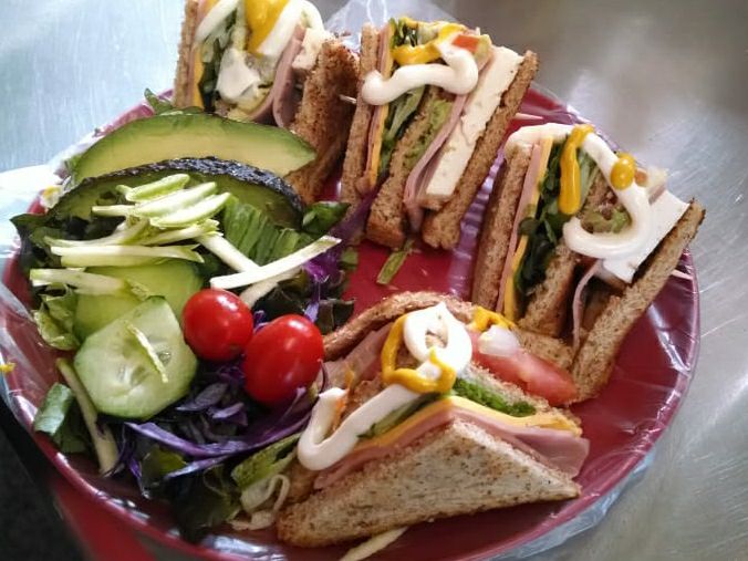 3 panes integrales acompañados de Queso panela, Queso amarillo y jamón mayonesa,mostaza, y ensalada