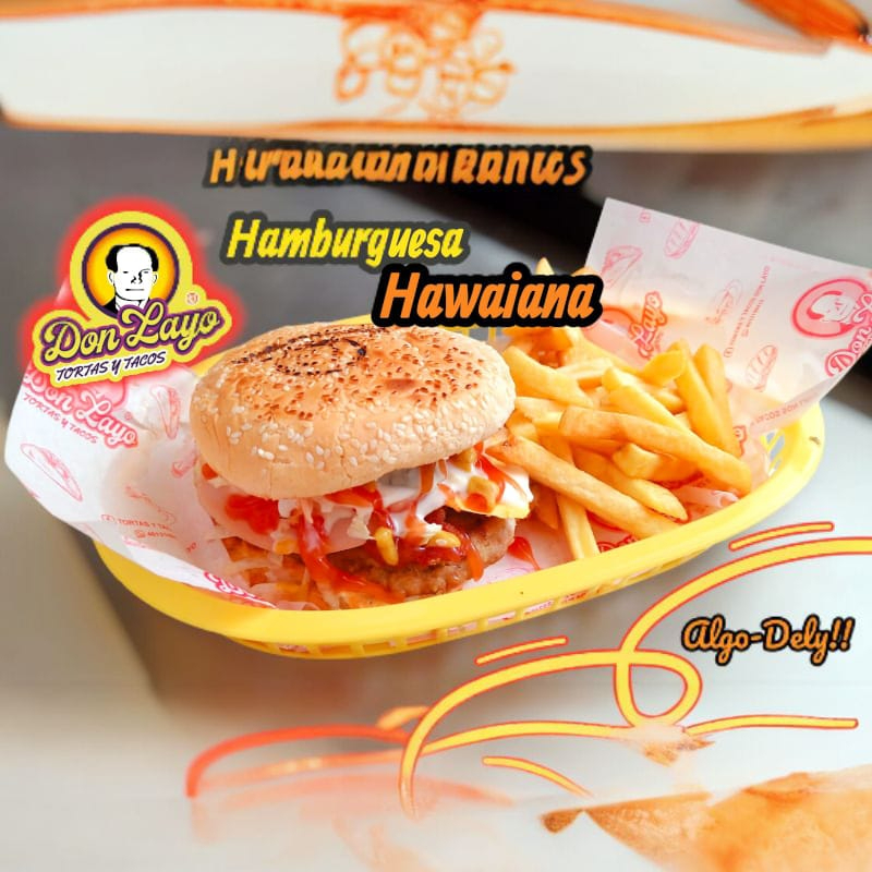 HAMBURGUESA HAWAIANA C/PAPAS