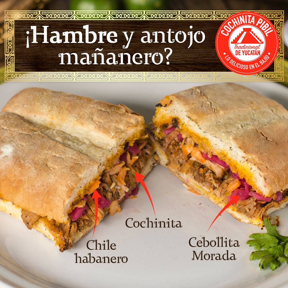 Frijoles negros, carne de cerdo, salsa de jitomate, rábano, cebolla y aguacate.