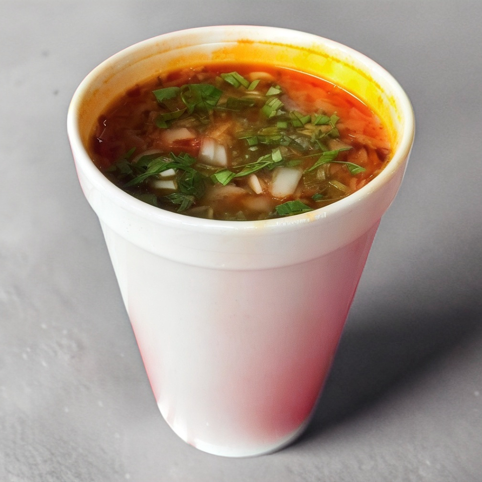 Delicioso consomé de litro SIN CARNE. Incluye verduras, salsas.
