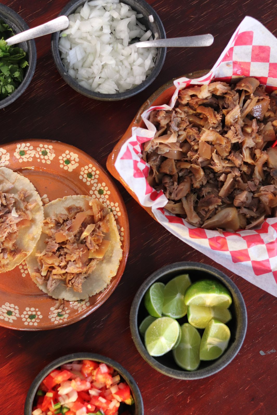 Incluye 30 tortillas hechas a mano, Salsas, Limon y cebolla