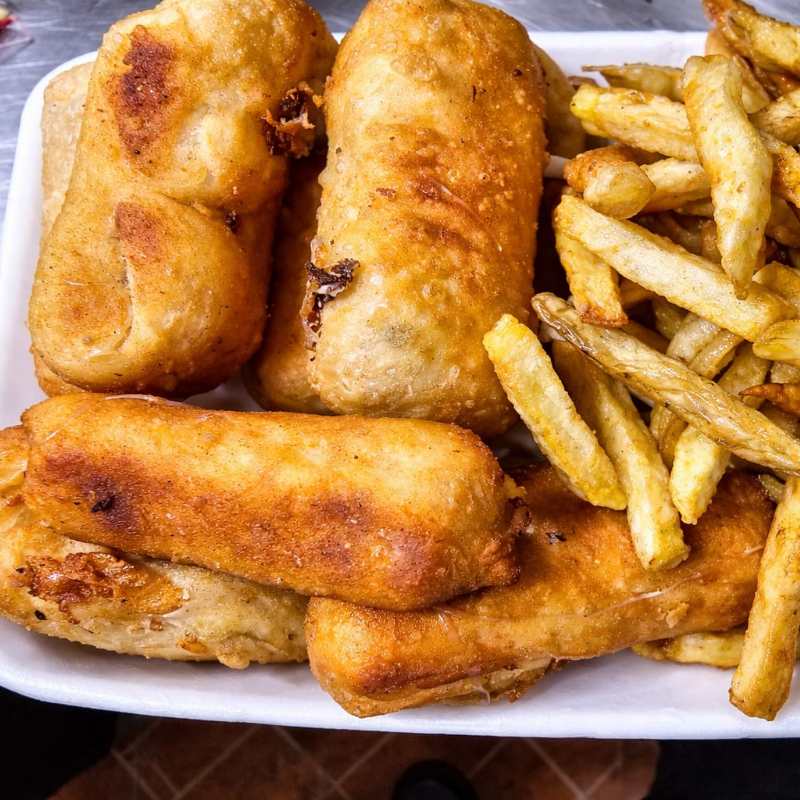 Empanizados y fritos hasta alcanzar la perfección crujiente. servidos con papas a la francesa