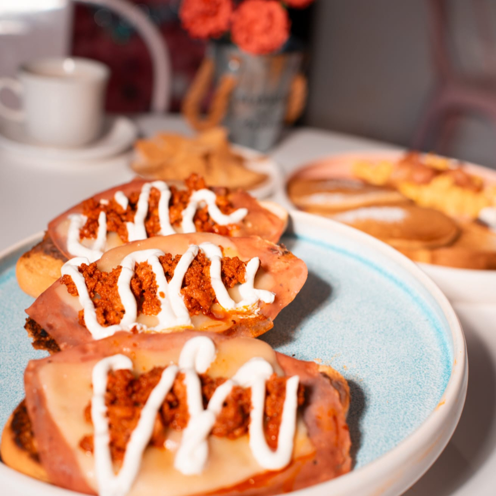 Orden de 3 molletes con frijol, queso manchego, chorizo y jamón