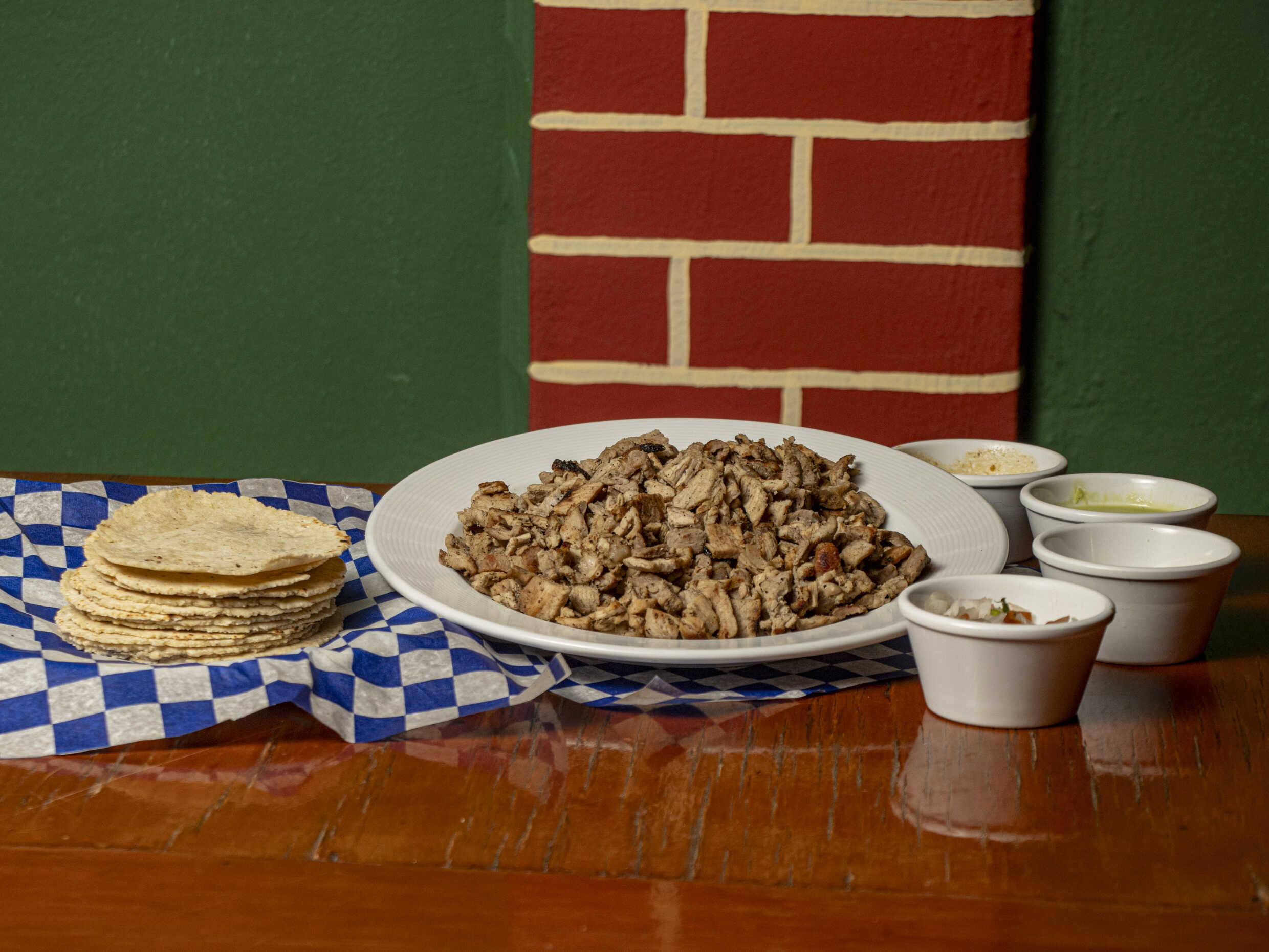 Tortillas hechas a mano con carne incluye salsas.