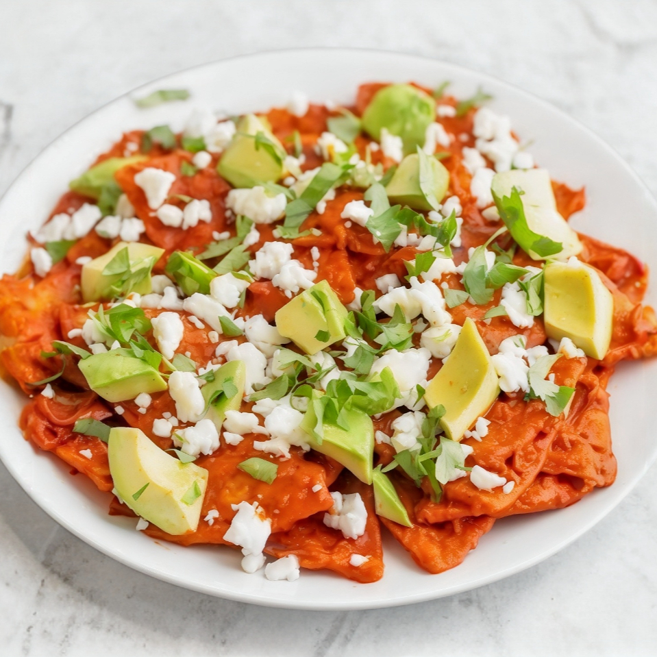 CHILAQUILES ROJOS CON CARNE FRITA DE CERDO