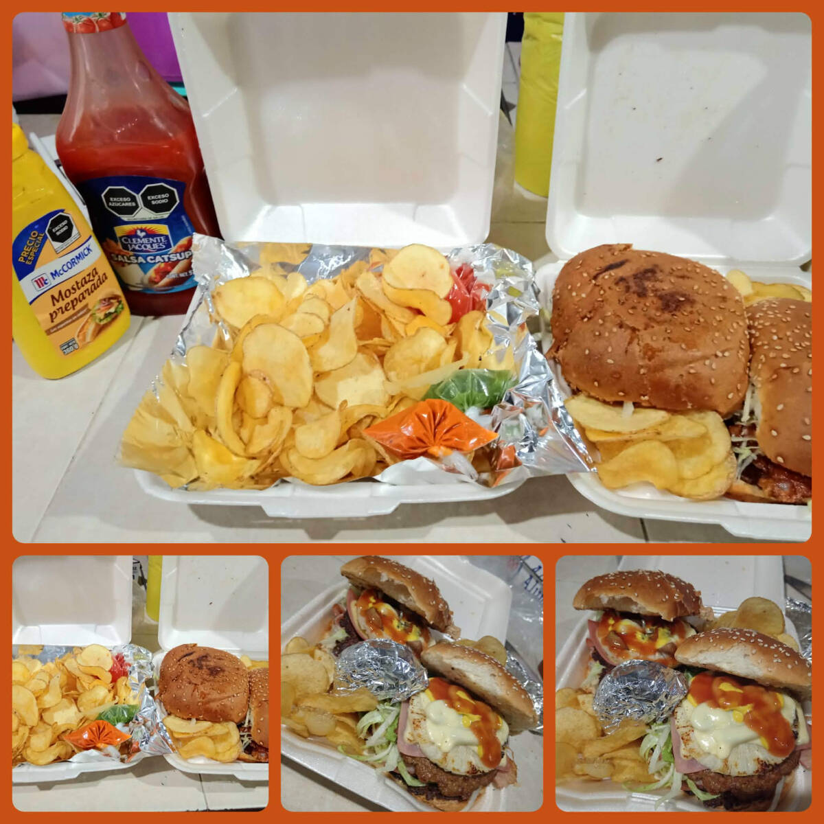 4 HAWAIANAS CON PAPAS PLATANITOS Y CEBOLLA ASADA