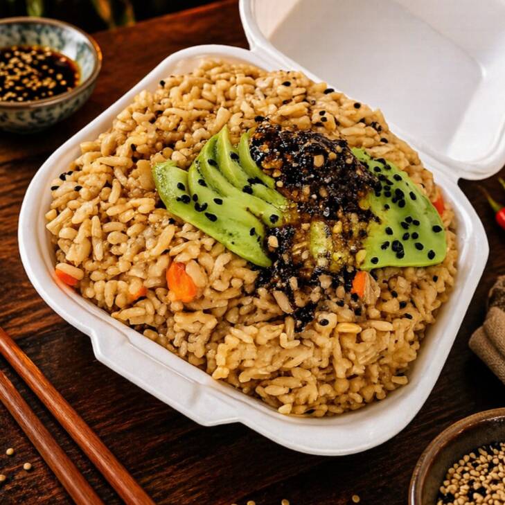 PD. rajas poblanas con pollo, queso philadelfia, pepino. PF. empanizado por encima una cama de aguacate hass