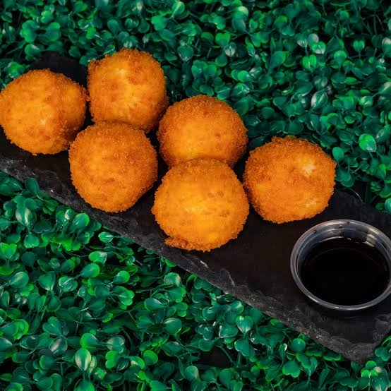 Bolita de arroz, empanizada y rellena de camarón a la mantequilla y Philadelphia.