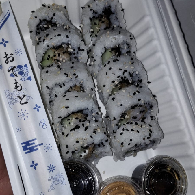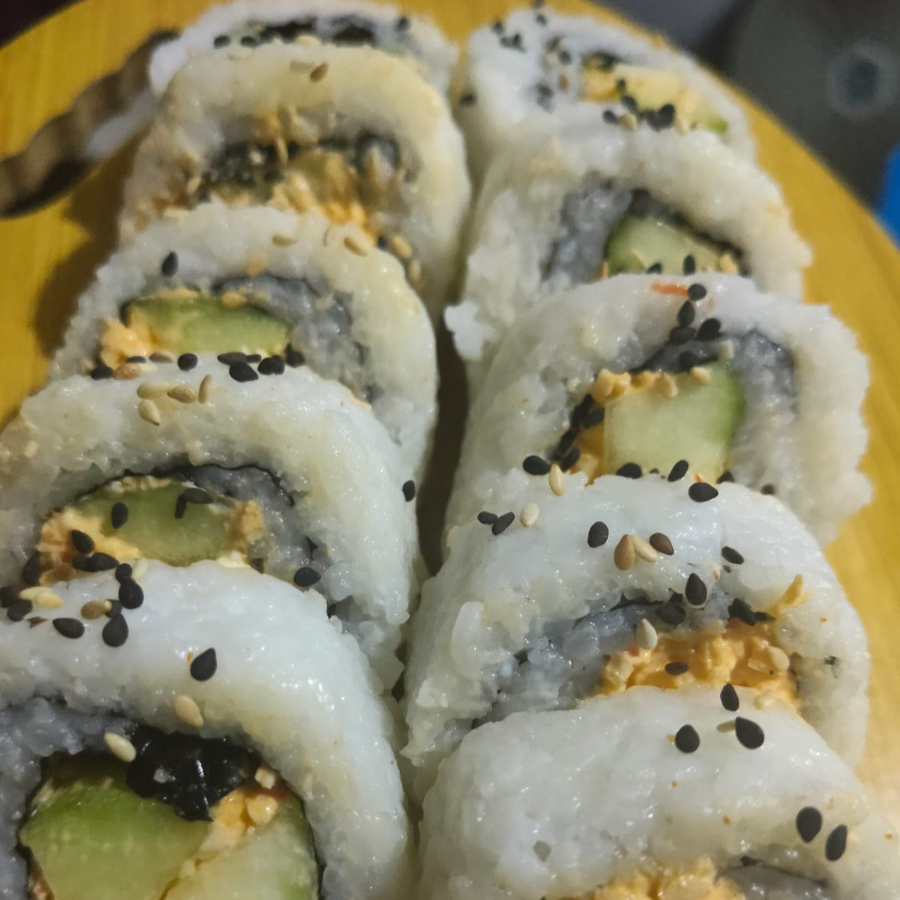 2 Rollos PD: surimy Spicy, pepino y alga nori PF: Arroz y Ajonjoli