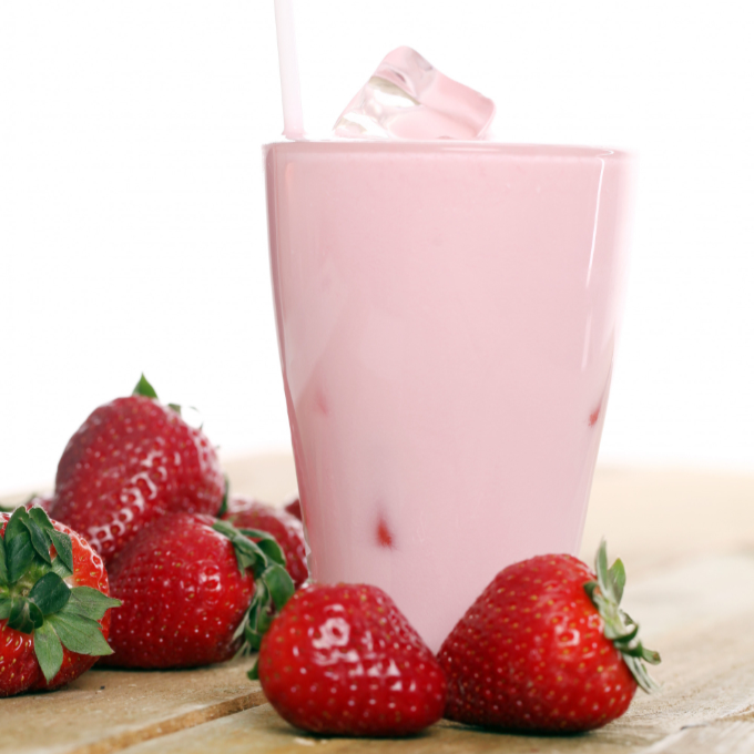 Licuado de fresa con leche entera o deslactosada.