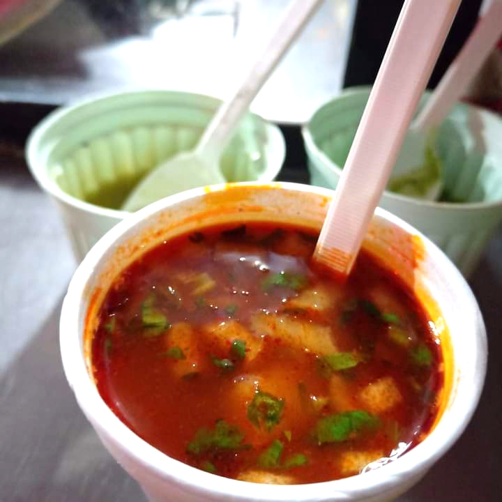 Media orden de consomé con carne y 5 tortillas a mano