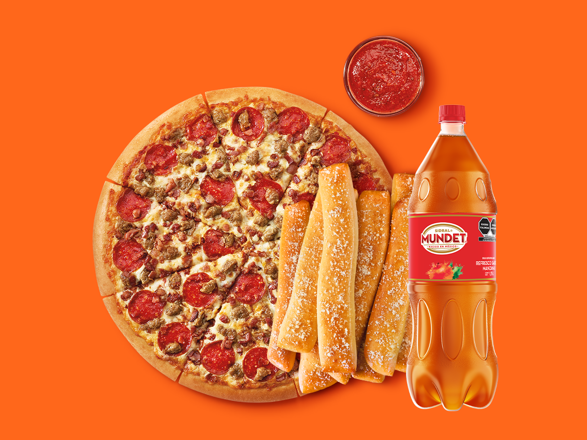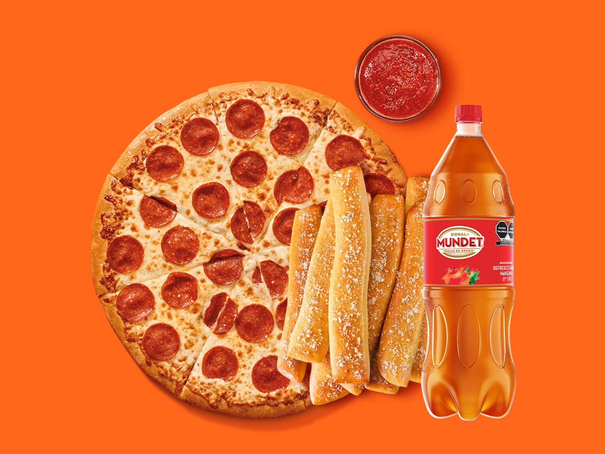 1 pizza grande de pepperoni + 1 Crazy Bread + 1 Crazy Sauce + 1 refresco de 1.75L