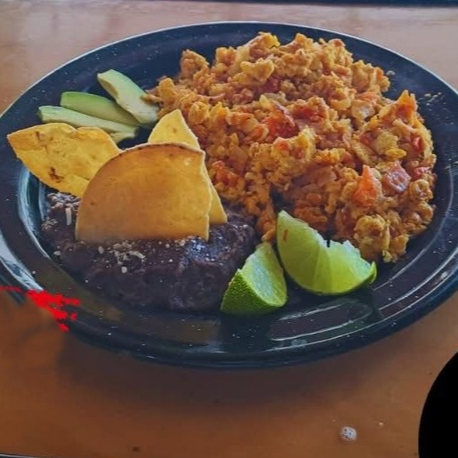 Con longaniza, con tomate, cebolla y chile con jamón, incluye frijoles refritos y tortillas