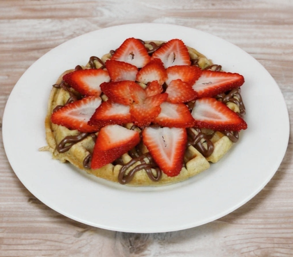 Delicioso waffle con un toque de canela con 3 ing a elegir
