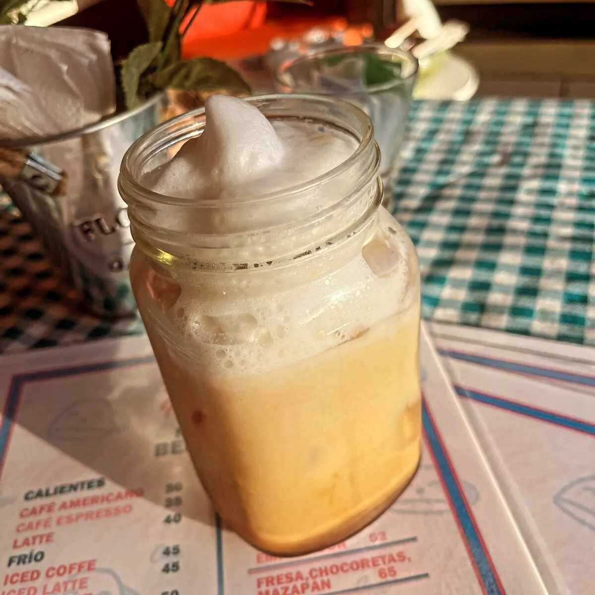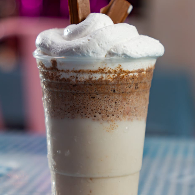 Frappé con leche deslactosada, carlos v y azúcar