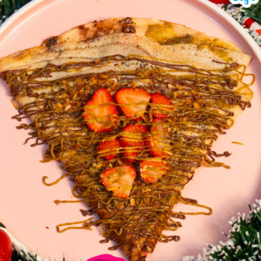 Crepa con Crema de Avellanas, Crema de Pistache, Pistaches y Fresa
