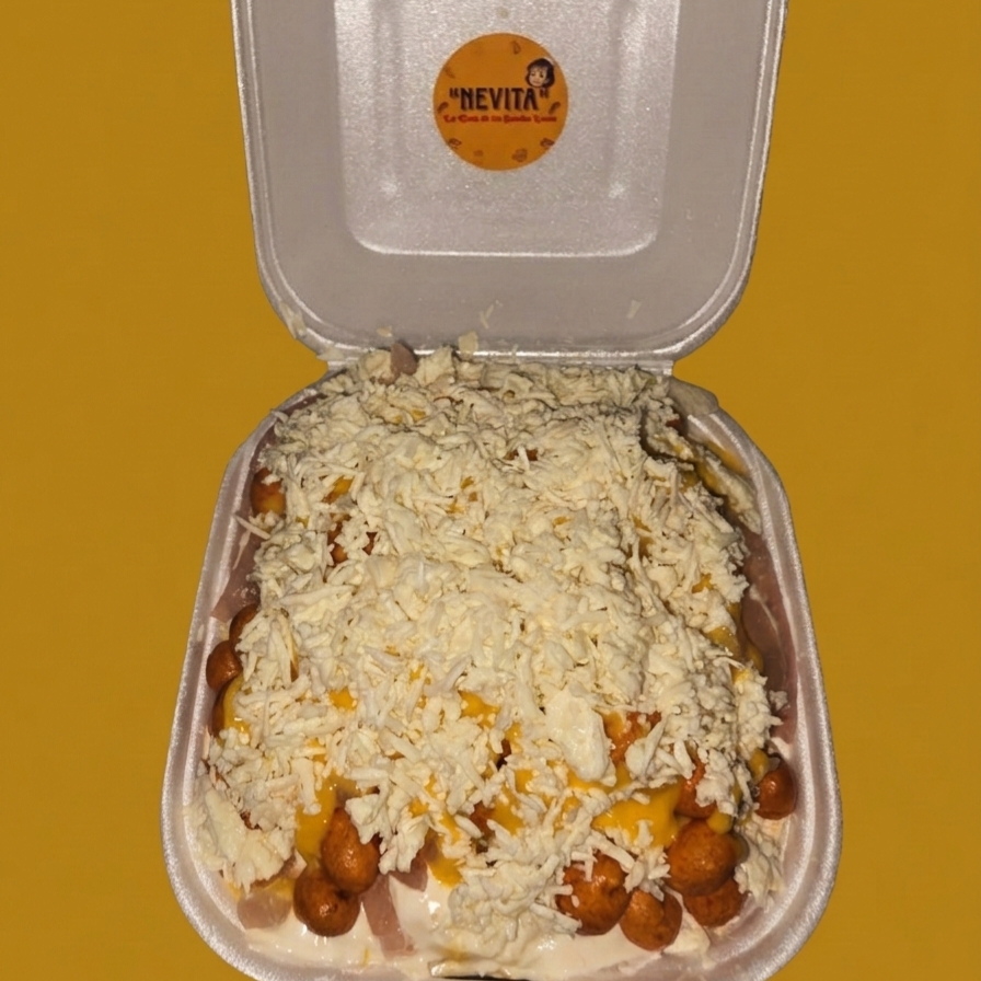 Surtidas de Queso de bola, queso Tip Top, queso de hebra, carne molida, pollo y Frijol