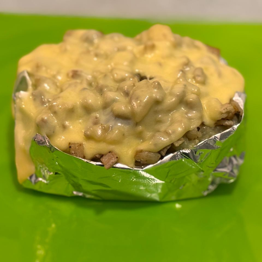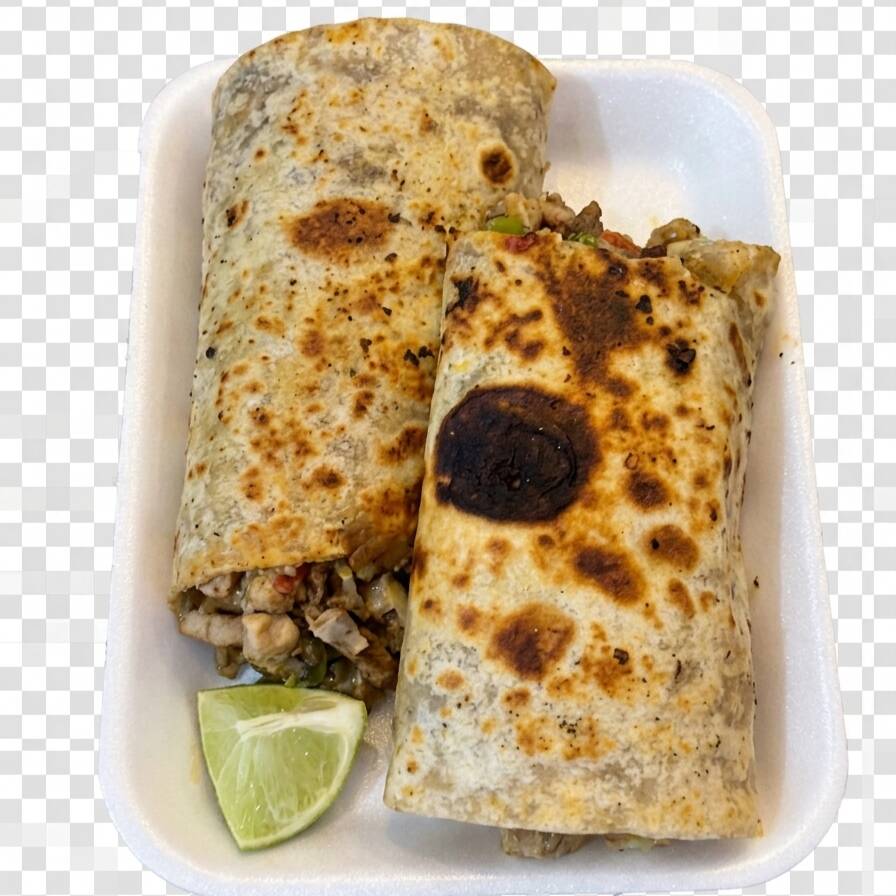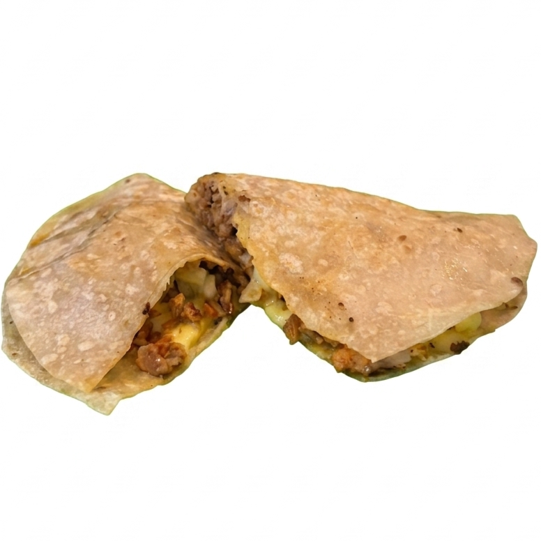Tortilla de harina gigante con carne, mix de verduras y queso gratinado