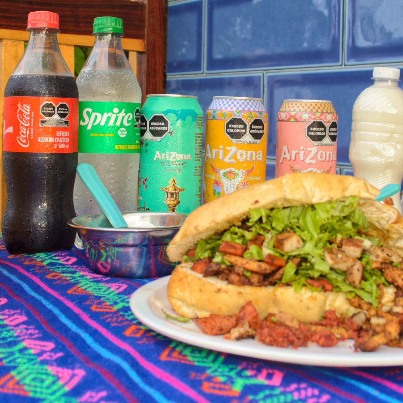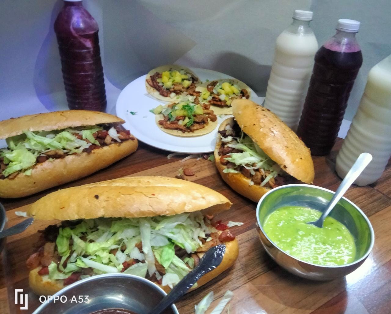 3 Tortas y 3 tacos de tu elección más 4 bebidas naturales horchata o Jamaica.