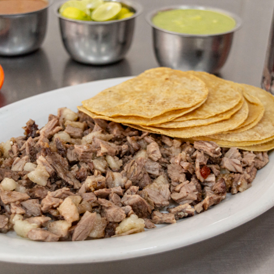 tortilla de maiz con cabeza de res