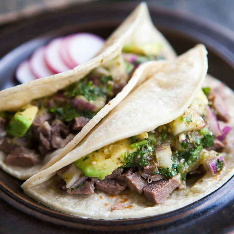 tortilla de maiz con bistec de res