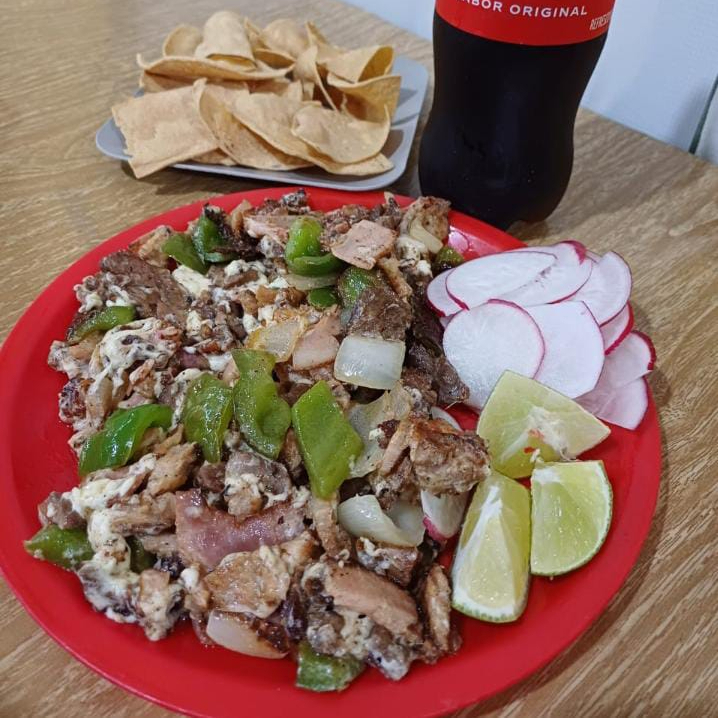 cebolla, cilantro, rabano, limon, 30 tortillas y chuleta