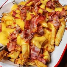 papas a la francesa con queso y tocino