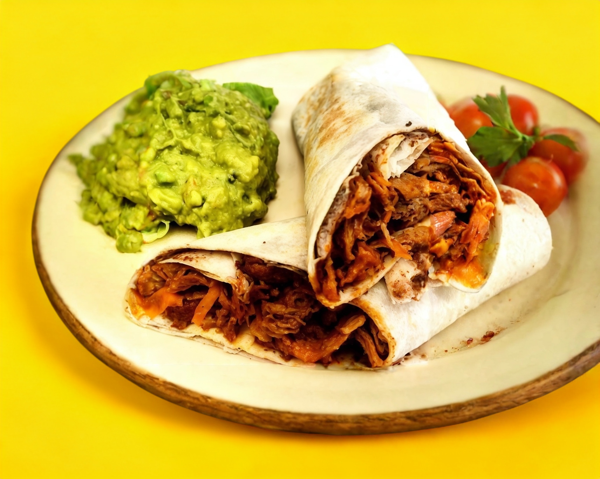 1 tortilla de harina de 30 cm aproximada, carne al pastor y queso de ebra fundido (opcional cebolla y cilantro)