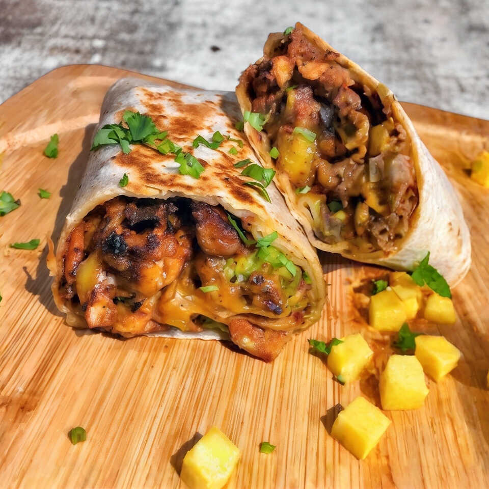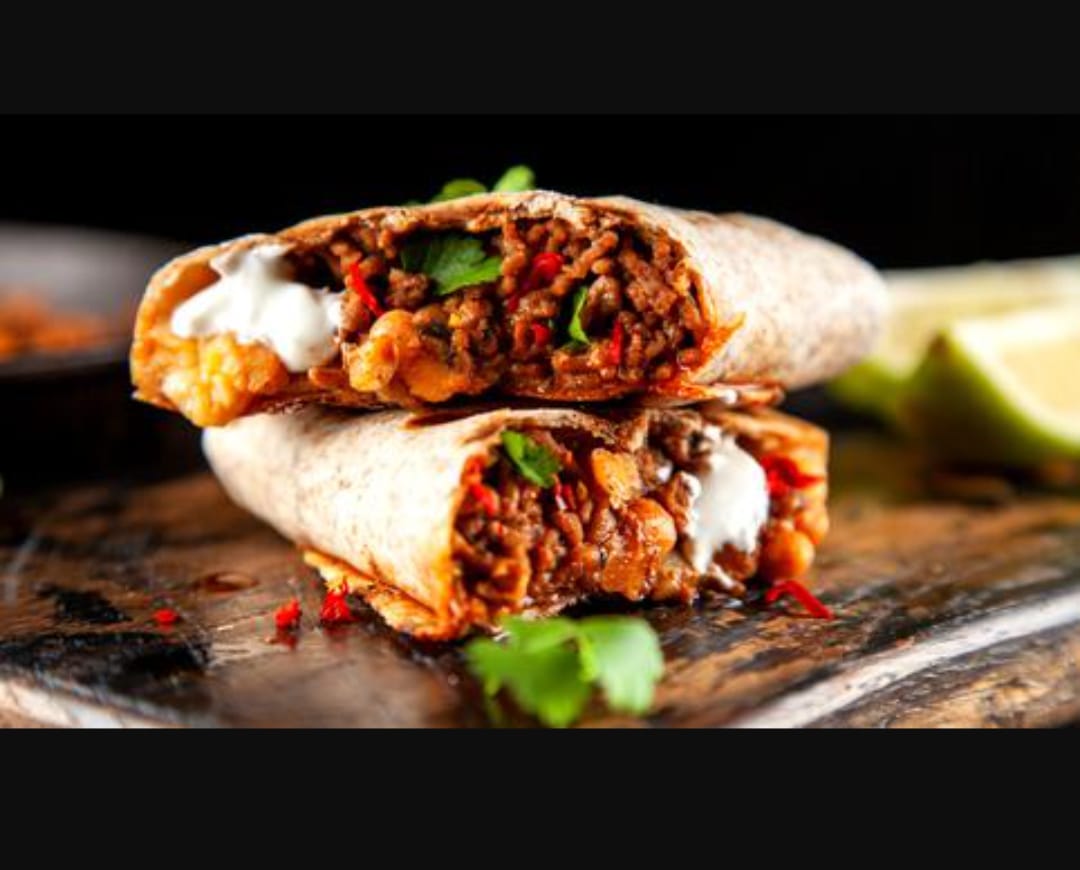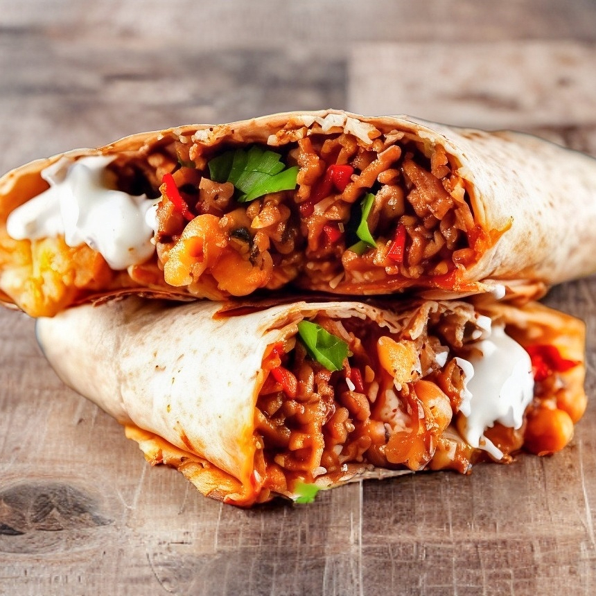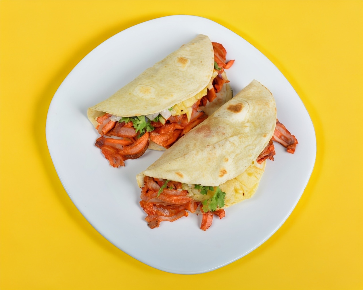 Doble tortilla extra grande de harina con doble carne al pastor, doble queso, cilantro y cebolla