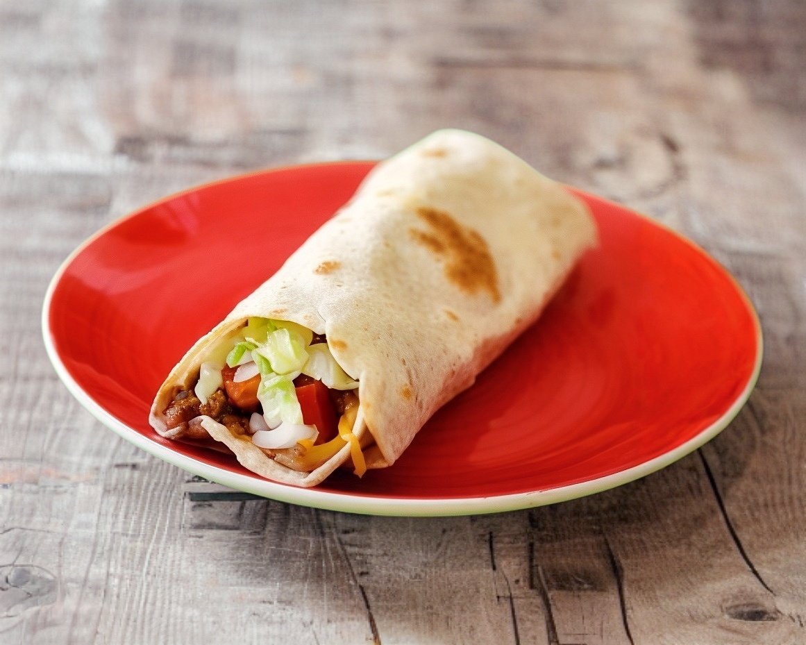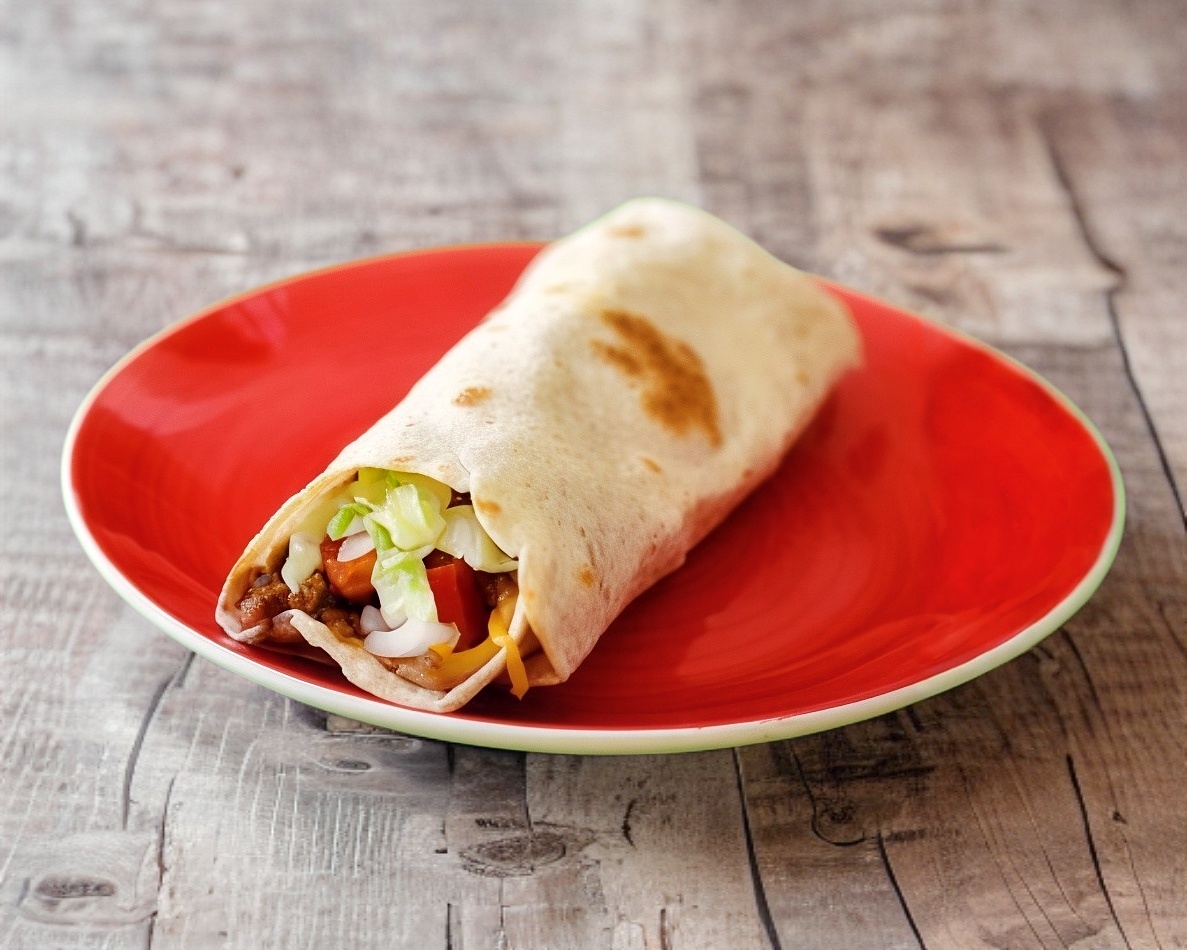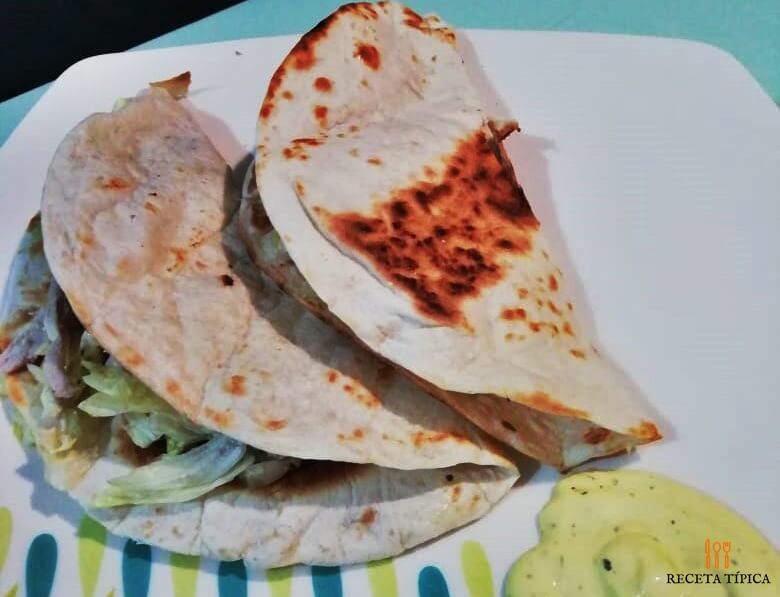 Tortilla de harina grande, lechuga, mayonesa y aguacate.