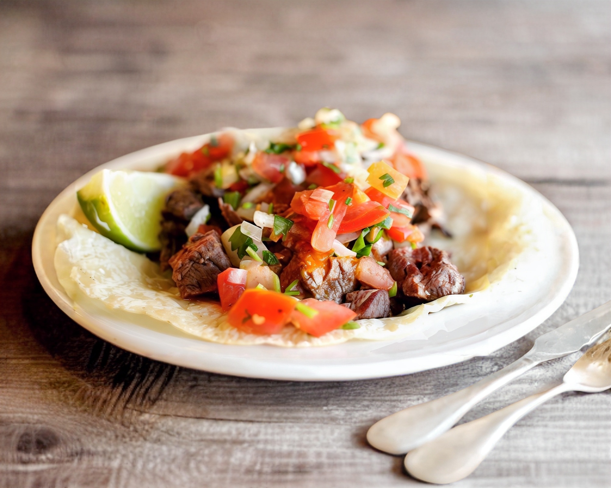 Carne de res a la plancha con o sin queso. tortillas, salsa y verdura