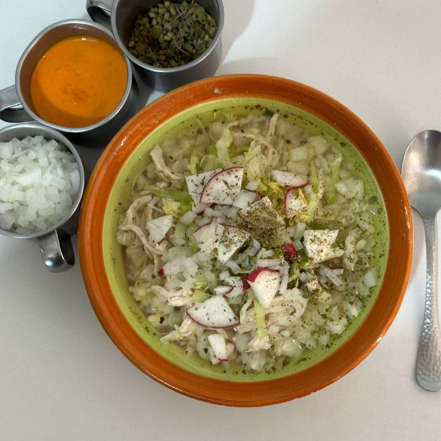 Acompañado con tostadas de maíz, cebolla, orégano, lechuga y rabanos