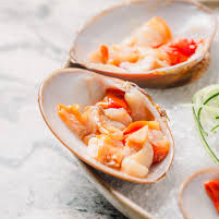 Camarón, callo de almeja, pulpo, pescado y aguacate.