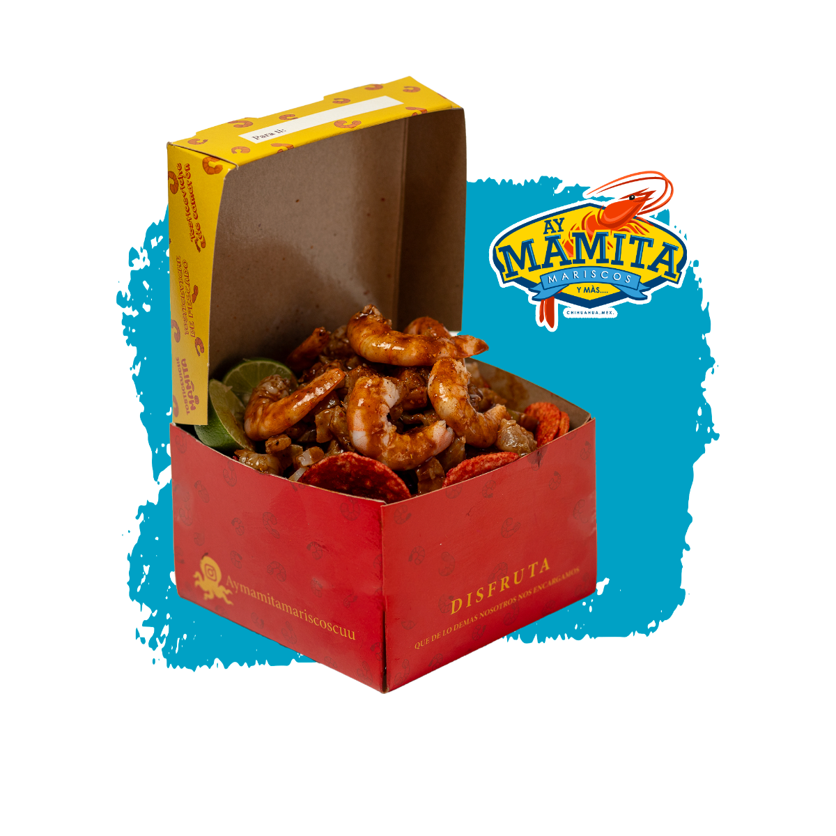 750 ml De clamato preparado con hielo, Tostitos, ceviche de pescado, media docena de camarón, porcion de carne seca, Skwinkles y serpentinas de tamarindo, (todo se envía por separado).