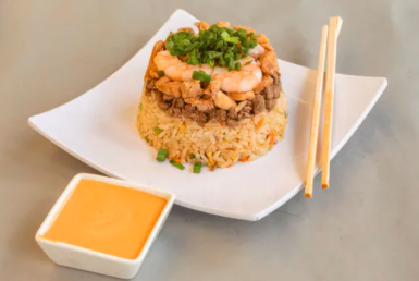 Arroz frito con soya y verduras. Con proteína a elegir.