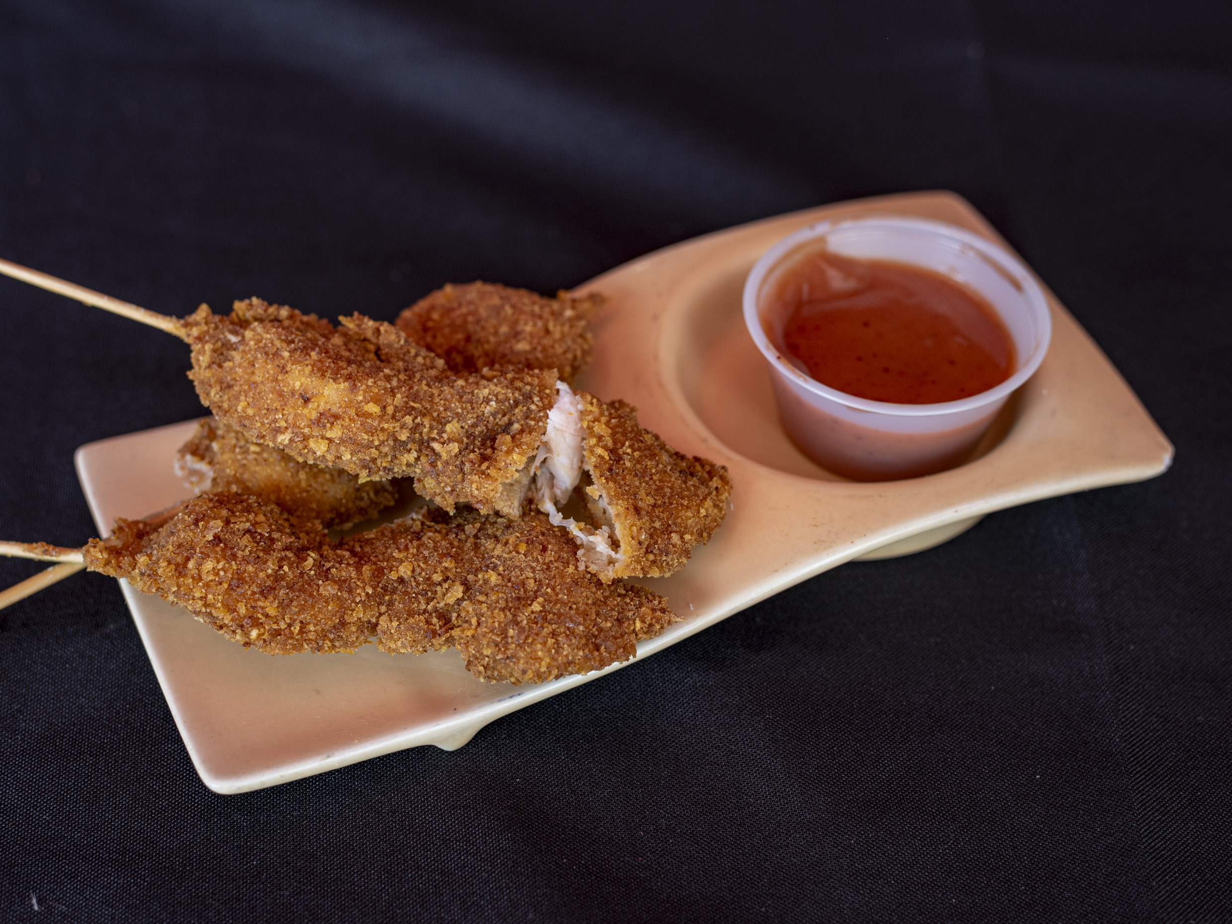 Orden de 3 brochetas empanizadas.